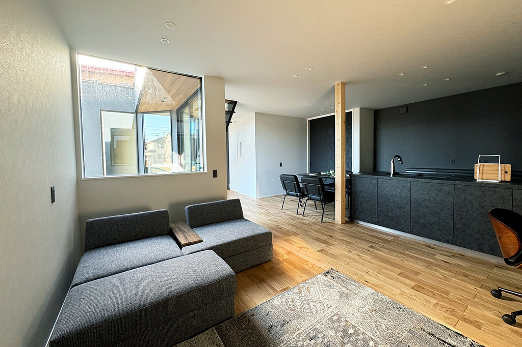 視界が広がる開放感的な空間 - コの字型の間取りや高窓を採用することで、