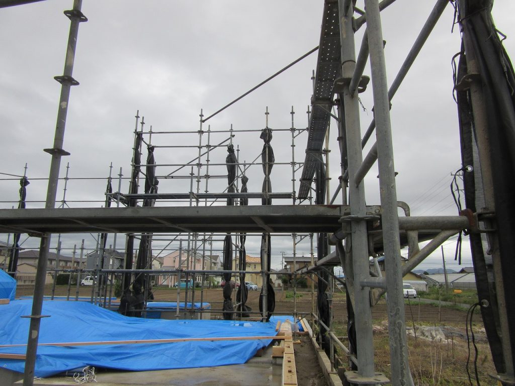 先行足場架け!/豊橋工務店/ブルーハウス/日進工務店/平屋/建築家とつくる家