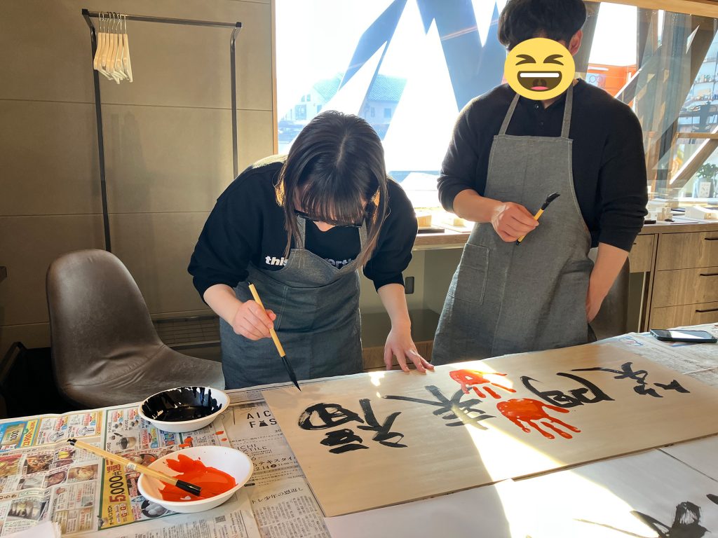 最後は、手形の入った板を囲んで記念撮影。