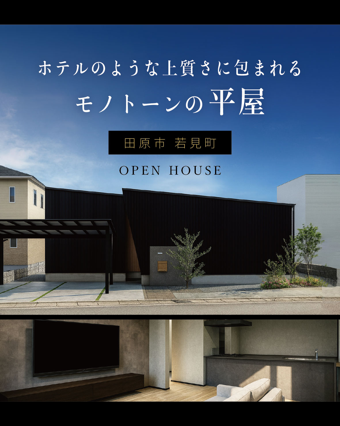 ホテルのような上質さに包まれるモノトーンの平屋