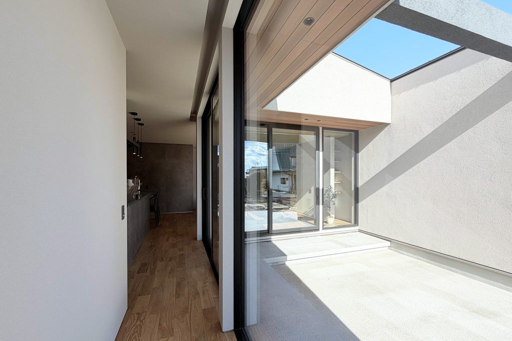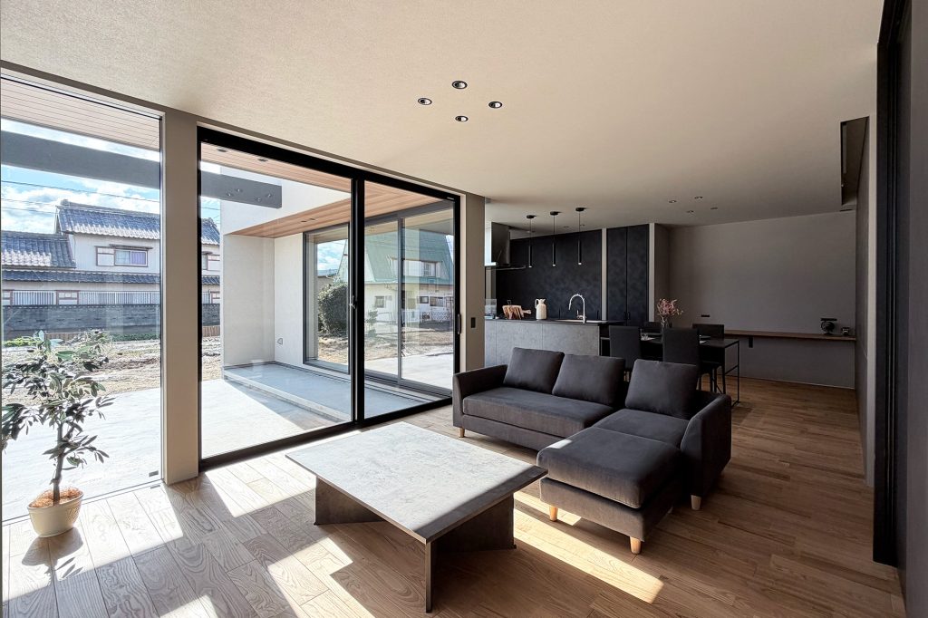 ・大開口の窓で、LDKと中庭がつながり