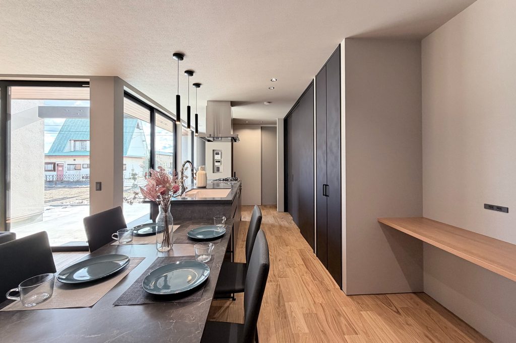 ・キッチン横に長いカウンターを設け