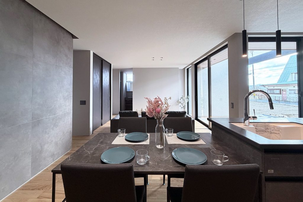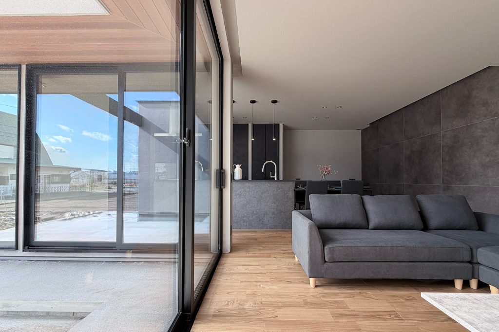 ・グレーを基調にブラックの建具と