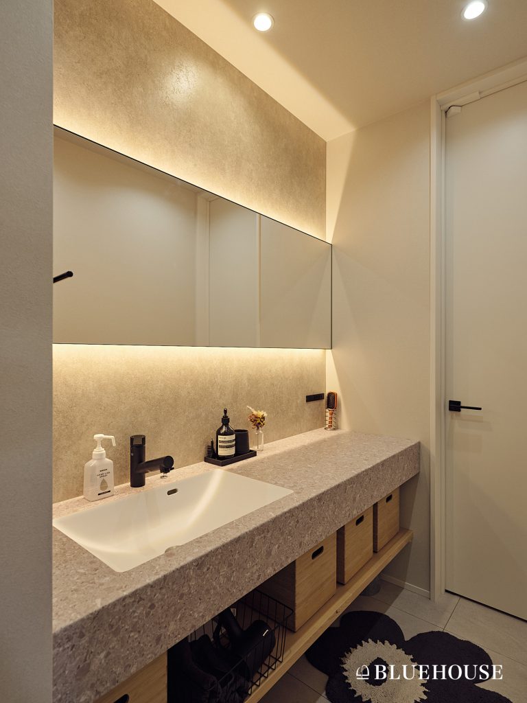 • パントリーから繋がる洗面台